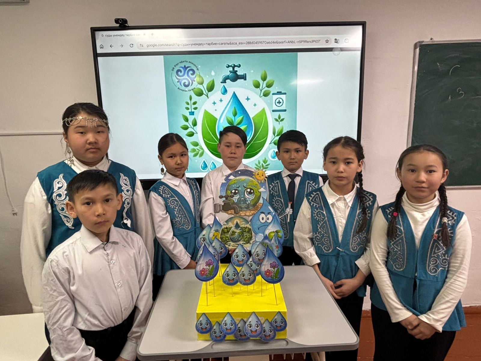 Бүкіләлемдік су ресурстарын қорғау күніне арналған «Суды үнемдейік» акциясы бойынша 5-сынып оқушылары суды қорғауға арналған макет жасады.
