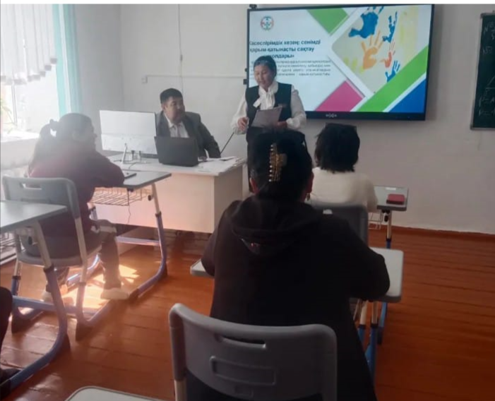 Педагог-психолог Муканова Айнур Муканкызы жасөспірімдердің эмоциялық ерекшеліктерін жақсырақ түсінуге көмектесу, өзара қарым-қатынасты үйлесімді құруға үйрену және ең бастысы – баланың осы күрделі, бірақ маңызды кезеңінде онымен сенімді әрі жақын қатынасты сақтап қалу мақсатында 5-8 сынып ата-аналарына мектеп әкімшілігінің қатысуымен кездесу өткізді. Кеңес,ұсыныстар берілді. Тренинг жаттығуларын жүргізді.